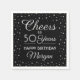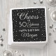 Add an elegant personalised touch to birthday party decorations with these custom paper napkins. Design features modern script calligraphy customisable "Cheers to 50 Years" and silver faux foil confetti dots on a black background. This template is set up for a 50th birthday celebration, but is simple to personalise to a different year. Happy Birthday!