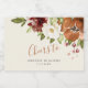 This Autumn Floral Mini sparkling wine Bottle Label features a top border of blooming burgundy marsala, dark orange flowers and white rose, with lush botanical greenery and foliage, rustic burgundy twigs and orange handwritten text Cheers. Perfect for an autumn party.