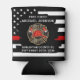 Cheers and Beers to your firefighter service years. Thin Red Line Maltese Cross Firefighter Retirement Can Cooler - USA American flag design in Firefighter Flag colors, distressed design . This personalized firefighter retirement can cooler is perfect to celebrate your retired fireman, firefighter retirement party favors, fire department retirement party. Personalize these maltese cross firefighter retirement can coolers with firefighters years of service, rank and name, fire department, and retirement date. .