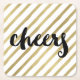Cheers | Black & Faux Gold Stripe Square Paper Coaster