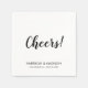Cheers. Elegant stylish black and white Custom script calligraphy Text wedding, or engagement party paper napkins.