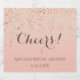 Here's to a perfect shower! Cheers! in fun font with bubbles against a sparkling wine pink colour.