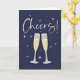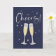 Chic champagne glasses with the word Cheers as they toast. The inside reads, Wishing you a fantastic year ahead, Happy New Year! You can also edit the text to use it for a wedding or other celebratory card.