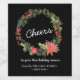 This Winter Christmas Wine label features a christmas tree wreath of lush fir branches, rustic red flowers on the black background with handwritten text Cheers. A sensual atmospheric and bright present for winter days.