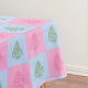 CHEERS CHRISTMAS TREES-2-COTTON TABLECLOTH 52x70in.-A whimsical Christmas tree created in uneven squiggle lines back and forth with the word cheer coming off the bottom of the tree. This tree pattern is created in soft pastel pink and green colours. The trees rest on pink and blue background squares. The design is available in assorted soft pastel colours. Choose any size/style of Zazzle tablecloths available. Coordinating home gifts and party supplies is available.