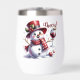 Cheers cute snowman drinking wine personalised Thermal Wine Tumbler