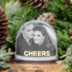 This is a fun and festive snow globe that is easy to customise with your own photos, name and date. One side of the snow globe is accented with your special photo and Cheers written in marquee lights; while the other side is decorated with the same photo or different photo, and names and date, (or your own special message if preferred). This makes a wonderful gift for the holidays, or the start of a new family tradition. If help is needed customising this item, just contact us at prettyfancyinvites@gmail.com.
