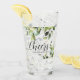 This elegant cheers wedding glass features gorgeous watercolor eucalyptus, other greenery, botanicals and foliage in various tones and shades of green. Elegant cheers script calligraphy combined with simple, easy to read serif font for custom typography for the newlyweds names and wedding date.