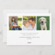 This simple Happy New Year greeting card features modern elegant script text on a dark blue background. The design offers space for 1 large horizontal photo on the front and 3 smaller square photos on the back. The backside offers custom text for your own personal message.