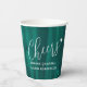 Loose abstract rich emerald green brush art wedding paper cups. A simple modern contemporary art design ideal for weddings or anniversary events in pretty shades of deep emerald green. Personalise with your own couples name or party details. © Original watercolor art and design by Sarah Trett for www.mylittleedenweddings.com