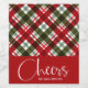 Cheers and your name in chic white lettering on a red, green and white Christmas plaid pattern, these wine bottle labels are fun for your holiday git giving or to serve at any special event. MATCHING items in our store.