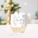 Cheers | Lively Fun Pink and Green Bubbles Stemless Wine Glass