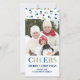 Cheers Merry Christmas Gold Blue Confetti Photo Holiday Card