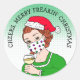 Cheers, Merry Freaking Christmas Retro Lady Wine Classic Round Sticker