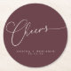 Cheers Minimal Burgundy Script Custom Wedding Round Paper Coaster