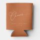 Cheers Minimalist Burnt Orange Script Custom Wedding Can Cooler