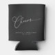 Cheers Minimalist White Script on Black Background Custom Wedding Can Cooler