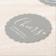 Cheers simple graphic grey and white wedding or event paper coasters. A great personalised addition to your wedding tables or for after wedding drinks. Personalise with your bride and groom's names or event details. Perfect for grey themed, or simple modern wedding or event. Other matching items available. Design by www.mylittleedenweddings.com on zazzle.