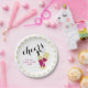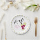 These modern, stylish paper plates say "cheers" in big, bold, script. A glass of wine and a wine bottle are coloured in gold and hot pink / magenta. The words "Happy New Year" appear but be sure to use the template to show the year correctly! We have used art from http://revidevi.etsy.com .