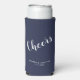 "Cheers" Modern Script Navy Blue Seltzer Can Cooler