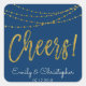 Cheers Navy Blue and Gold Foil String Lights Square Sticker