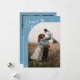 Modern New Year's photo template card featuring a hand written script text that says "cheers to the new year" with a curved frame picture. You can add another picture and a message on the back of the card. Denim blue.