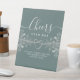 Elegant vintage modern silver and sage green wedding Open Bar tabletop sign with simple rope heart and gilded floral lace. Cheers!