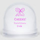 Cheers purple pink bow bridal shower add name snowglobe