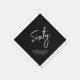 This custom paper napkin will add stylish detail to your 60th birthday celebration. This black 60th birthday napkin design features simple chic lettering "Sixty" with custom text. Matching invitations and party supplies are available in my shop BaraBomDesign.