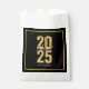 Stylish Cheers to 2025 White Handwriting Script Calligraphy and Bold Faux Gold Foil Typography on Black Modern New Year's Eve Party Favour Bag.