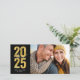Stylish Cheers to 2025 White Handwriting Script Calligraphy and Bold Faux Gold Foil Typography on Black Modern New Year Holiday 8x4 Photo Card