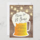 Cheers to 21 years birthday invitation featuring a beer mug set on a rustic wood background with hanging mason jar lights