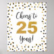 CHEERS TO 25 YEARS sign featuring a beautiful black and gold glitter confetti design.