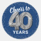 Elegant fortieth birthday stickers featuring a trendy blue background that can be changed to any colour, silver sparkly glitter, and the saying "cheers to 40 years" using forty silver hellium balloons.