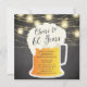 Cheers to 60 years birthday invitation featuring a beer mug set on a black chalkboard background with hanging mason jar lights
