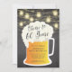 Cheers to 60 years birthday invitation featuring a beer mug set on a trendy black chalkboard background with hanging mason jar lights