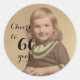 Cheers to 60 Years! Script font photo party favour stickers. Upload your photo & change the font colour to match your theme.