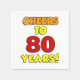 Cheers To 80 Years colourful party napkins. Red and yellow colours. Great for an 80th milestone birthday party.