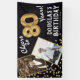 Celebrating turning 80! This banner allow you to upload a before and after photograph of the birthday man or woman, with the fun title 'Cheers to 80 Years!'. Featuring a rustic black chalkboard background, faux gold number eighty helium balloons and faux gold glitter confetti. Just personalise name and date and viola!