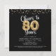 Cheers to 80 Years Photo Collage Balloon Black Gold Birthday Invitations. Celebrate an 80th birthday with these elegant and festive party invitations featuring 8 photos, the title CHEERS TO 80 YEARS with faux metallic gold balloon numbers and confetti and modern script typography in your choice of background colour (shown in black). ASSISTANCE: For help with design modification or personalisation, transferring the design to another product or if you would like coordinating items, contact the designer BEFORE ordering via Zazzle Chat or email makeitaboutyoustore@gmail.com.