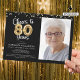 Celebrate an 80th birthday with these elegant and festive party invitations featuring the title CHEERS TO 80 YEARS with faux metallic gold balloon numbers and modern script typography, one photo and confetti in your choice of background colour (shown in black). ASSISTANCE: For help with design modification or personalisation, transferring the design to another product or if you would like coordinating items, contact the designer BEFORE ordering via Zazzle Chat or email makeitaboutyoustore@gmail.com.