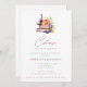 Cheers to a New Chapter Wine & Books Bridal Shower Invitation with a watercolor composition of a wine bottle, glass, books and flowers. "Cheers" is in masala modern hand lettering.