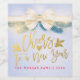 Cheers to A New Year Calligraphy Typography Script - Chic Blue and Gold Ribbon with Christmas Botanical Berry and Pines Holiday Sparkle Glitter Bokeh Lights.