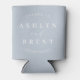 These personalised dusty blue Initial can coolers/koozies are perfect for a wedding, engagement party, bridal shower or rehearsal dinner. The design features the trending pink colour with simple, modern fonts. Customise them with your names and event date to make them one of a kind