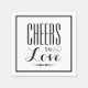 Wedding napkins feature a stylish black "Cheers to Love" mixed typography design with scroll accent. White background colour and black text can be customised to coordinate with your wedding colour scheme.