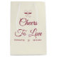 Cheers To Love Burgundy Script Ivory Bow Wedding Medium Gift Bag