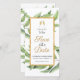 This elegant and modern style Cheers to Love Save the Date Wedding design features two champagne glass in a toast to love. There is a pretty gold frame with green botanical accents that surround the text on the front of this gold & greenery Save the Date. Personalise this simple wedding Save the Date card with your names and the date and location of your event.