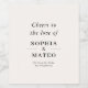 The sentiment is captured beautifully with the phrase "Cheers to the love of," set in a refined, elegant italic serif font. This typographical choice adds a sense of movement and romance, leading the eye naturally to the main event: the couple's names displayed proudly below. It’s a subtle yet impactful detail that turns a standard pour into a personal celebration of your unique union.