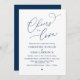 Announce your happily ever after in style with our beautiful gorgeous modern Navy Blue theme design (Cheers to love) couples shower celebration invitation card. With its sophisticated yet playful design, this invitation is sure to set the tone for an unforgettable event. The invitation card features modern minimalist romantic script design, adding a touch of timeless elegance to your celebration. Designed by TeeshaDerrick