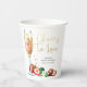 Strawberry and champagne paper cups, lettered with Cheers to Love in casually elegant gold calligraphy. Watercolor design with a glass of champagne, strawberries and strawberry flower. The template is ready for you to personalise for any occasion, such as bridal shower, couples shower, anniversary, engagement etc.